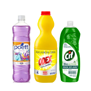 Detergentes, lavandinas, limpiadores, desinfectantes, aromatizantes.